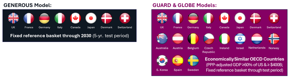 Expanding from the Medicaid GENEROUS Model with 8 reference markets and focusing solely on net pricing (reported country-level average), the Medicare GUARD and GLOBE Models will look across 19 "economically similar" reference markets.